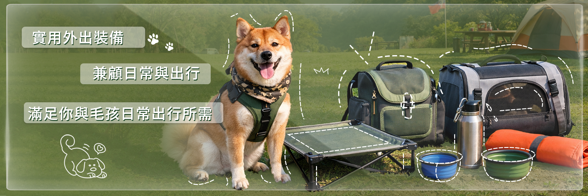 集合外出與日常使用的實用裝備,從攜帶到休息,滿足毛孩與你每一次出門的需求。🎒